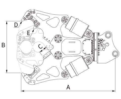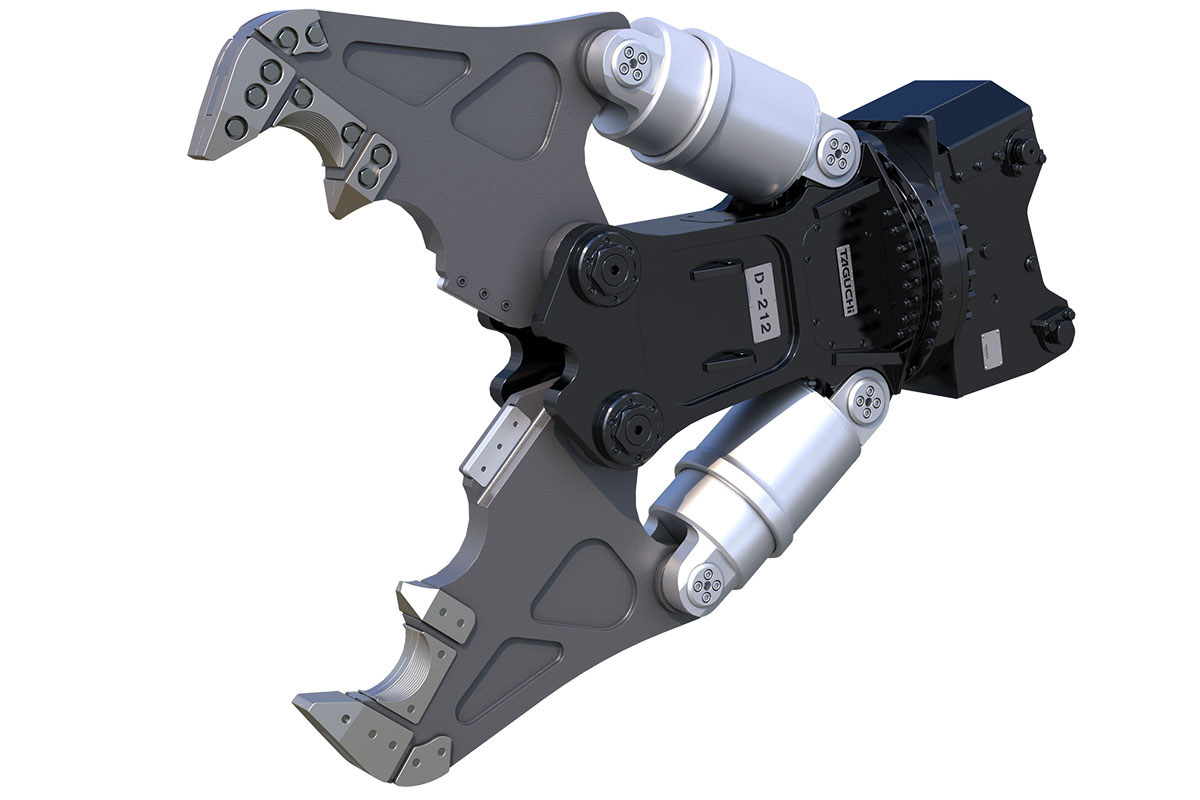 とにかく軽い! 同期リンクなしのシンプルなデザイン構造で軽量化を実現、メンテナンスコスト削減を可能としました。強固な削り出しアーム、自社製シリンダにより圧砕力を保ったまま、広い開口幅を実現! 増速バルブは標準搭載です。