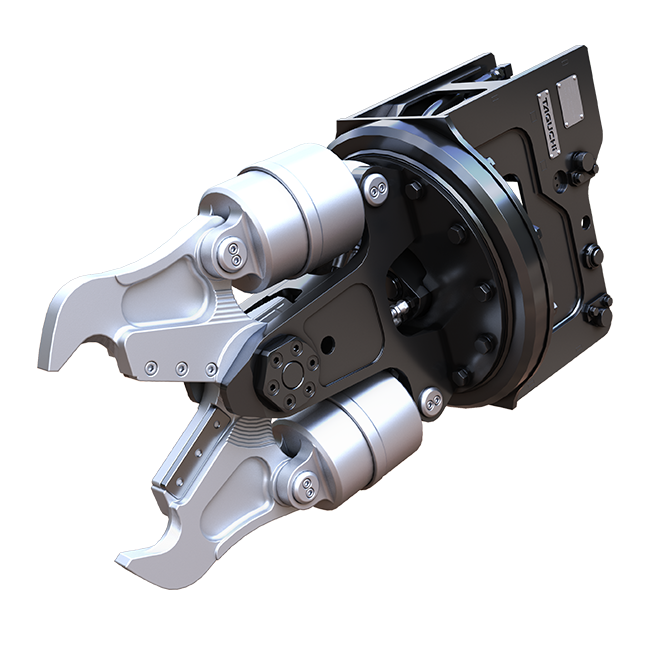靭性に優れた特殊鋼によるオリジナル形状のブレードは、対象物にしっかりくい込む特殊形状の経済的な二面使用タイプ。オリジナルのツインシリンダ、アーム閉時に発生するねじれや曲げを極力抑えるオリジナル形状アームと、ミニクラスながらタグチの技術の粋を集めたモデルです。