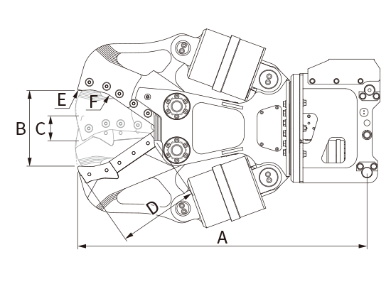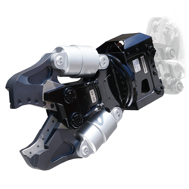 オリジナルのツインシリンダによる広い開口幅と圧倒的な切断力が最大の特徴。異物の混入を防ぐ本体フレームサイドカバー、シリンダロッドカバー、増速バルブ(アーム閉じ側)を標準搭載しながらも軽量化を実現させています。