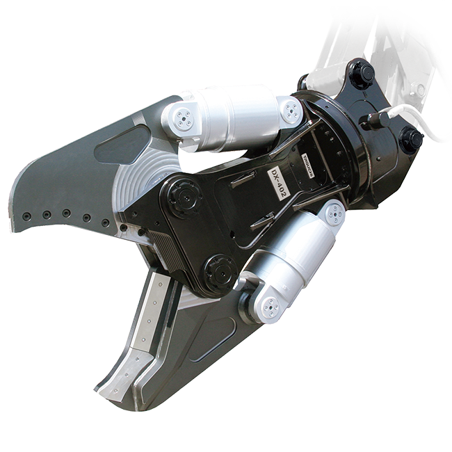 オリジナルのツインシリンダによる広い開口幅と圧倒的な切断力が最大の特徴。異物の混入を防ぐ本体フレームサイドカバー、シリンダロッドカバー、増速バルブ(アーム閉じ側)を標準搭載しながらも軽量化を実現させています。