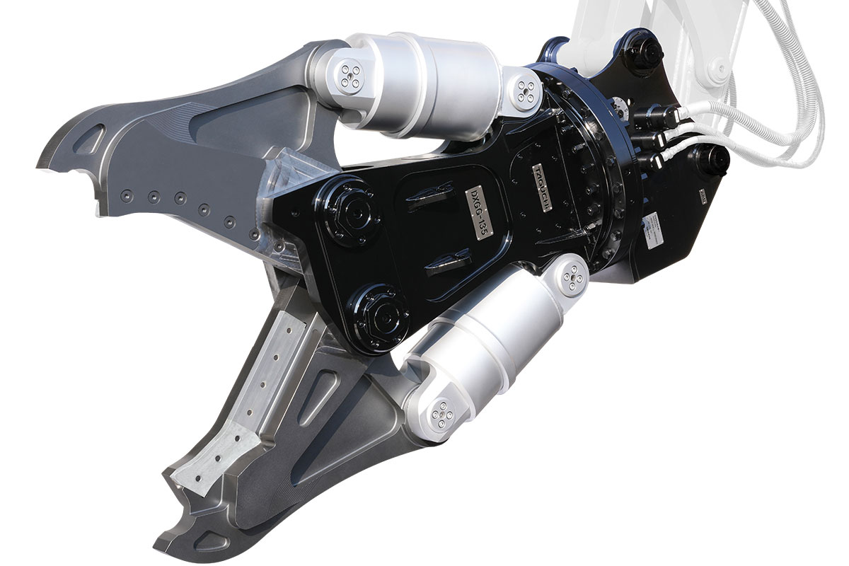 オリジナルのツインシリンダによる広い開口幅と圧倒的な切断力が最大の特徴。異物の混入を防ぐ本体フレームサイドカバー、シリンダロッドカバー、増速バルブ(アーム閉じ側)を標準搭載しながらも軽量化を実現させています。