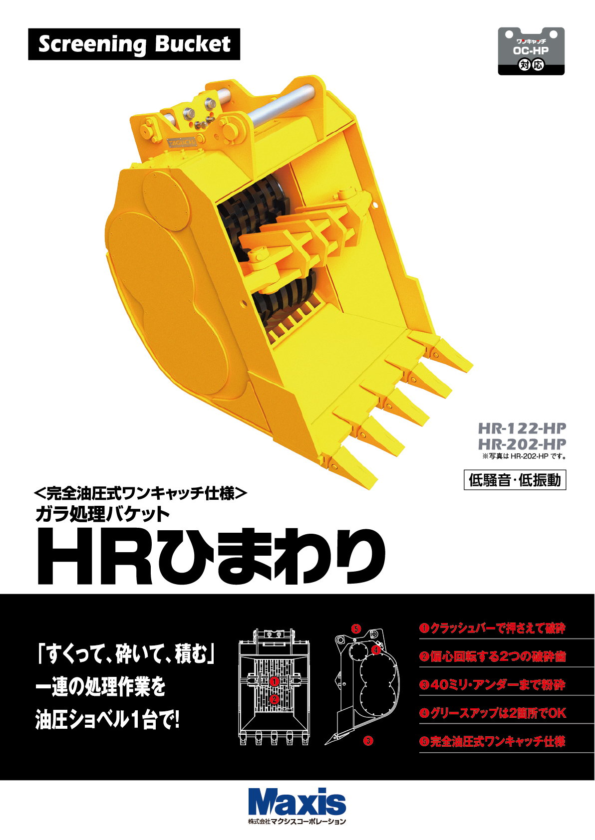ガラ処理作業が、油圧ショベル1台でOK