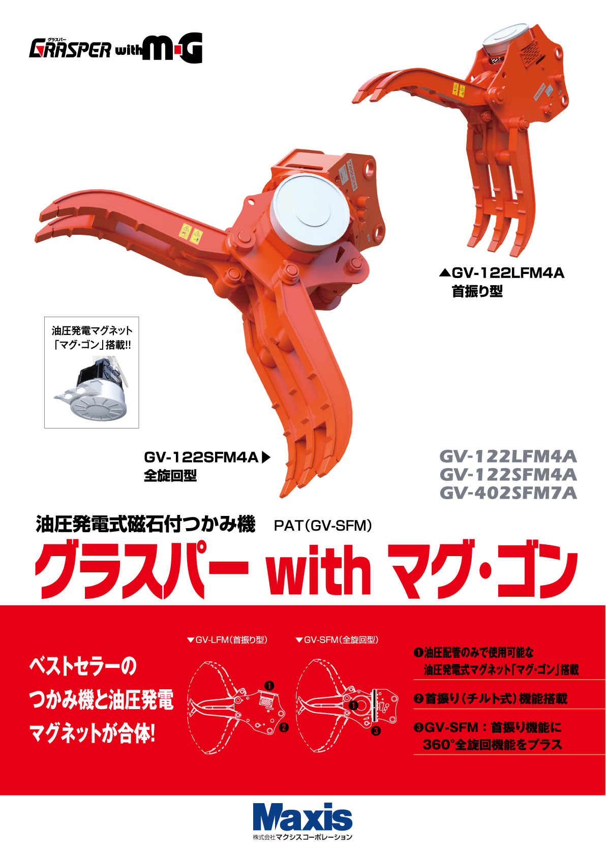タグチ製品「グラスパー」に、油圧発電式マグネット