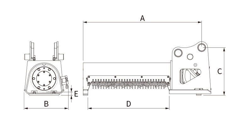 A:785mm 全長B:360mm 全幅 C:400mm 全高 D:465mm 刈幅 E:15mm 刈高 |