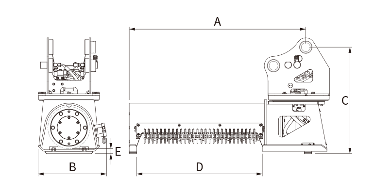 A:1040mm 全長B:405mm 全幅 C:630mm 全高 D:745mm 刈幅 E:30mm 刈高 |