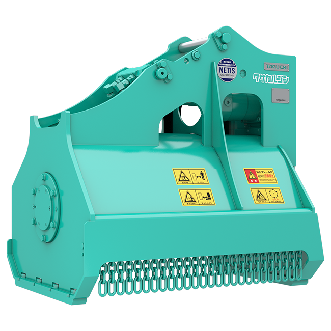 法面や斜面でもきれいに刈り込むことができ、雑草・雑木はもちろん、竹やぶの刈り取りも可能です。石などの飛散を防止する飛散防止チェーンを採用しているため、安全に草刈り作業をすることができます。