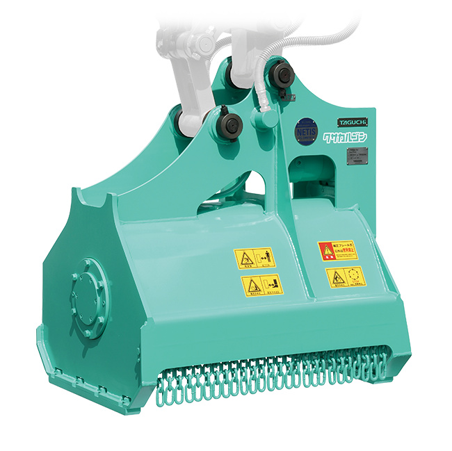 法面や斜面でもきれいに刈り込むことができ、雑草・雑木はもちろん、竹やぶの刈り取りも可能です。石などの飛散を防止する飛散防止チェーンを採用しているため、安全に草刈り作業をすることができます。