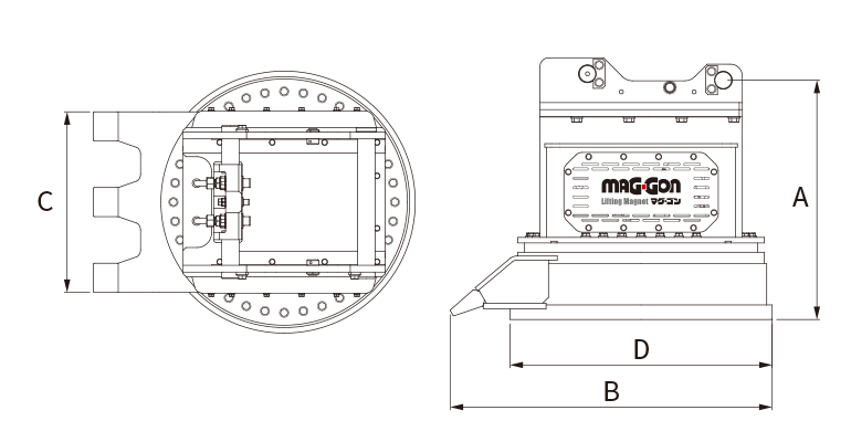 | サイズ | A:580mm 全高B:695mm 全長 C:360mm 爪幅 D:φ500mm マグネット径 |