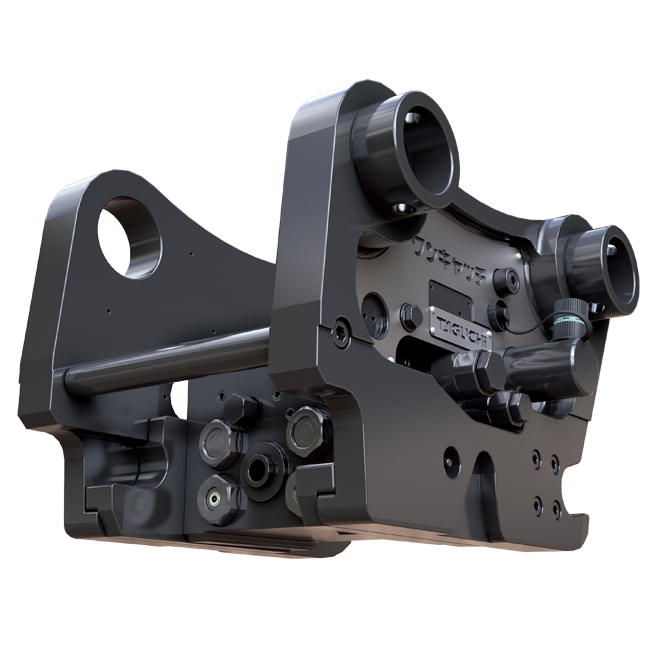 国産初! 当社オリジナルの「カップリング」。プラスでは、油圧カップリングに加え、電気カップリングも搭載しています。また、完全油圧式ワンキャッチ(OC-HP)と同様のロック機構を搭載しており、ダブルロック方式で「落ちない、外れない」、究極の安全性を実現しています。