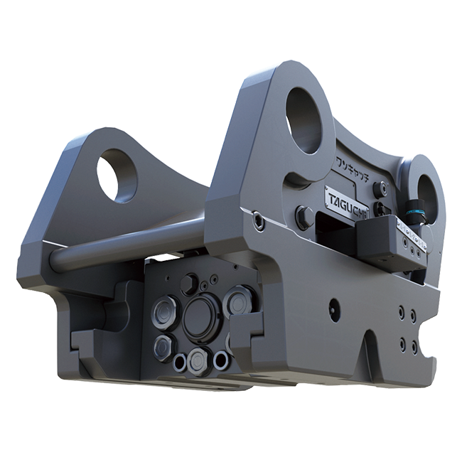 通常仕様のタグチ製アタッチメントでも問題ありません。専用の「アダプタのアダプタ」があれば、完全油圧式ワンキャッチの対応アタッチメントとして使用することができます。