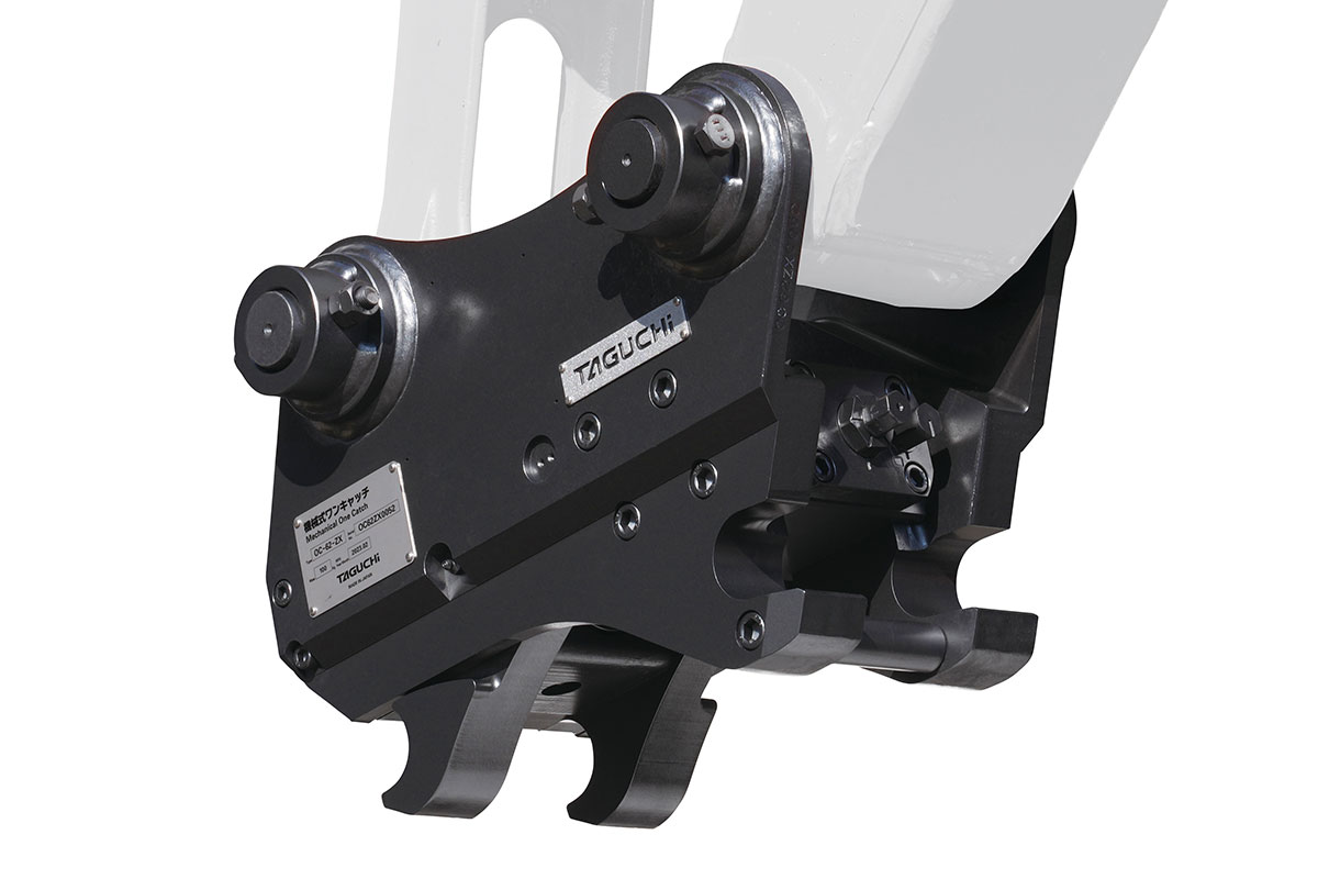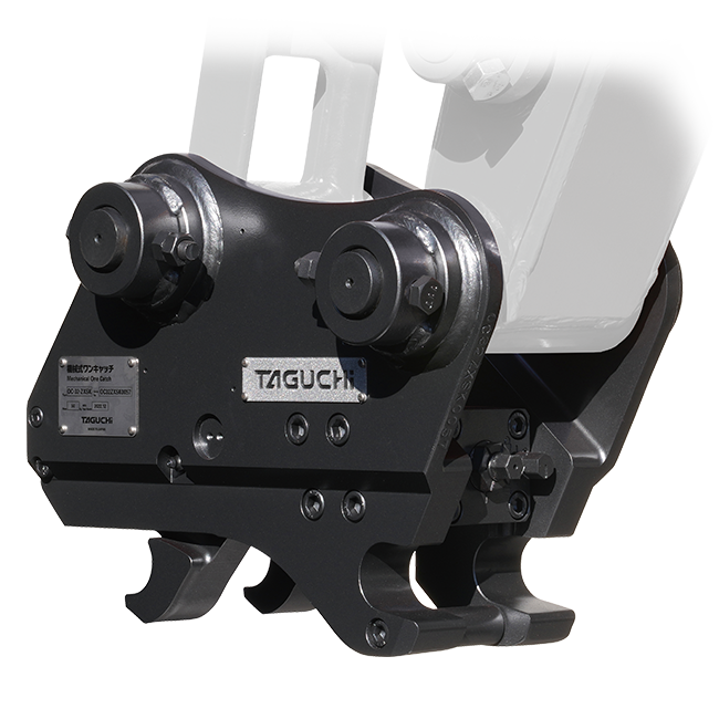 ロックピンを差す手間なし! 簡単な着脱操作でアタッチメントの稼働効率がアップ。