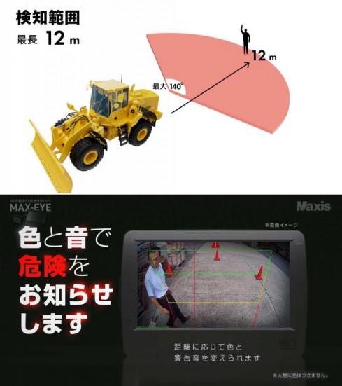 ヒーター付AIカメラを重機に搭載し、降雪時でもカメラ自体の積雪による視界不良を防止し、人を感知した際に警告灯及び警報で知らせて周辺監視をサポートするシステム「MAX-EYE」が10月11日にNETISに登録されました。