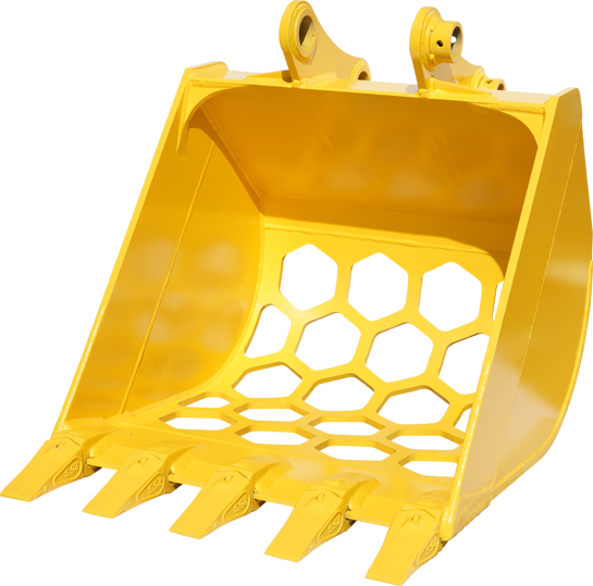 スケルトンのマス目をハニカム(六角形)形状にすることで、本体重量の軽量化と低コスト化を実現。バケットのスケルトン部分には、ハニカム形状を採用しています。前後・左右・斜め、どの方向へも標準バケットの操作感覚で、スムーズでキレイな地ならし作業が可能です。