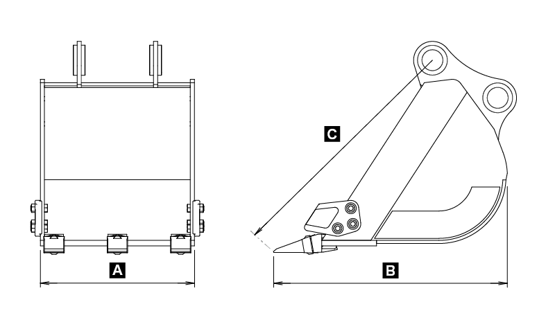 ![]() A:450mm バケット幅 B:685mm バケット奥行 C:725mm バケット長さ |