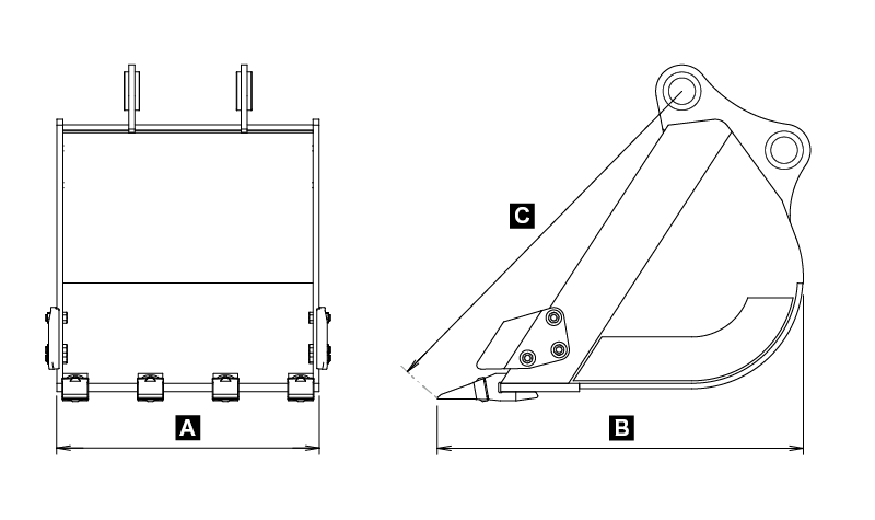 ![]() A:600mm バケット幅 B:840mm バケット奥行 C:895mm バケット長さ |
