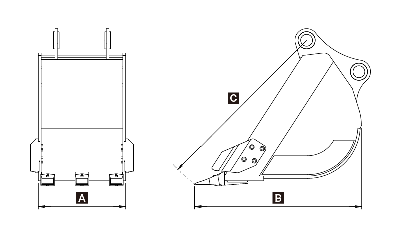 オリジナル形状のバケットです。各メーカー・各クラスとも、作業現場に合わせ、