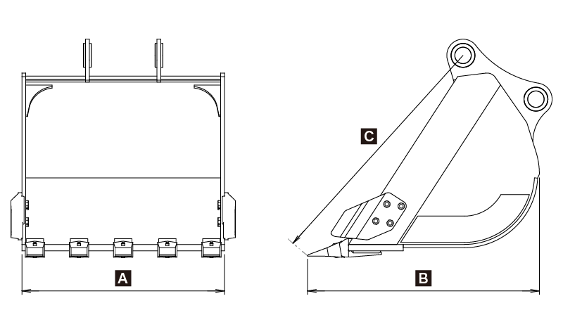 ![]() A:600mm バケット幅 B:685mm バケット奥行 C:725mm バケット長さ |