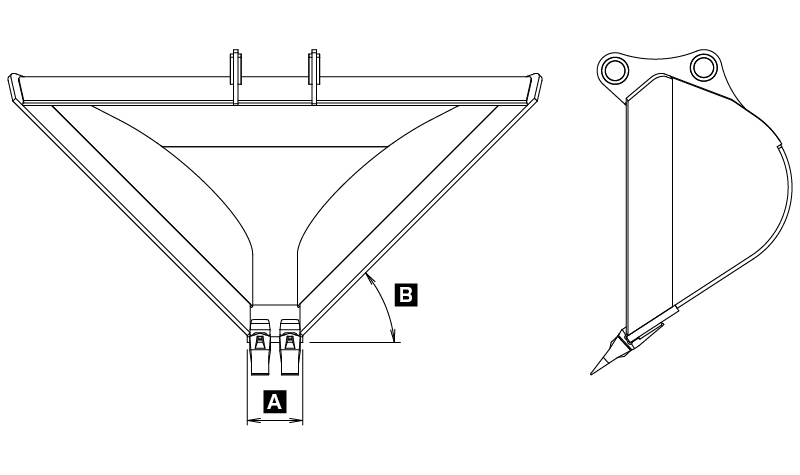 A:63.4° (5分) 傾斜角度B:300mm バケット先端幅 |