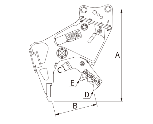 A:1570mm 本体長さB:750mm 最大開口幅 C:120mm ブレード長 |
