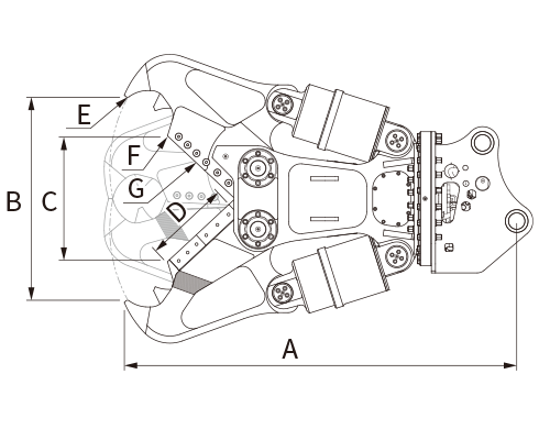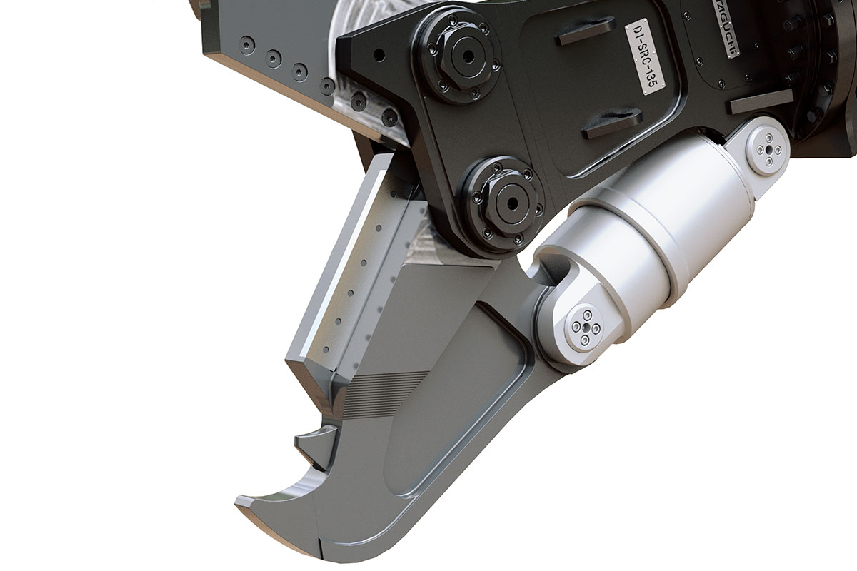 ブレードホルダの先端までオールブレイド仕様! ブレードは先端側・根元側ともに4面使用タイプと経済的。先端、中間ツースによる圧砕作業はもちろんのこと、SRC構造物に含まれる鉄骨の切断作業も可能です。強度がアップしたアームは、カッター専用のオリジナル鋼材に削り出し加工を施した逸品です。