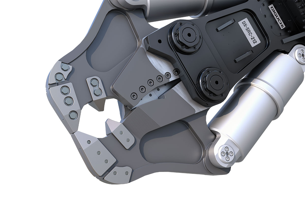 独自の強固なシリンダ構造で、業界トップクラスの開口幅、軽量化を実現。強度がさらにアップした削り出しアームでの圧砕作業はもちろん、X型のブレードがSRC構造物に含まれる鉄骨も強力切断! 対象物にしっかりくい込む特殊形状で、コラム切断など、数あるタグチのカッターシリーズの中でも対象物をより捉えやすい設計となっています。