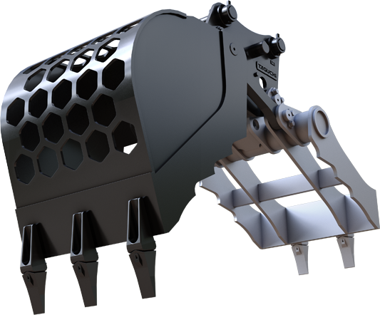 すくう機能とつかむ機能が合体した、油圧式のバケット&フォークが登場! フォークで押さえるようにつかめるため取りこぼしが少なく効率的に作業が行なえます。家屋・都市土木の解体はもちろん、森林内の作業道づくり、産廃物の回収・積み込み作業などにお役立ていただけます。