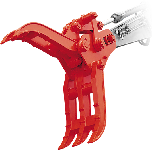 各種つかみ作業には信頼と実績のグラスパーシリーズ。グラスパーV3は、独自開発のオリジナルリンク機構を搭載。2点取付けタイプのつかみ機に比べ、アームと取付ピンの損傷を最大限に防ぐためアームを折ることなく安全に使用していただけます。
