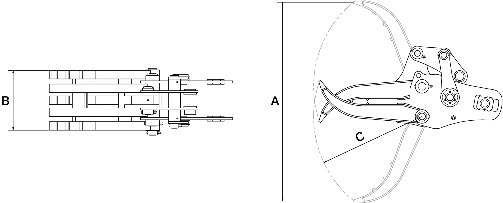 A:820mm 最大開口幅B:230mm 爪幅 C:440mm 爪長さ |