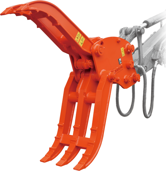 首振り機能の搭載により、あらゆる角度からのつかみ作業を実現。 機械式タイプでは困難だった現場でも優れた作業効率を実現します。爪の開閉は本体内部の油圧シリンダで動くため、普段のバケット操作でOK。ピン2本の簡単脱着で、取替時間も大幅に短縮できます。