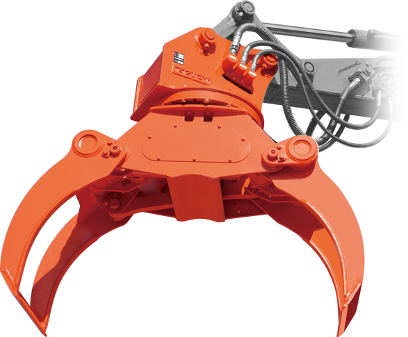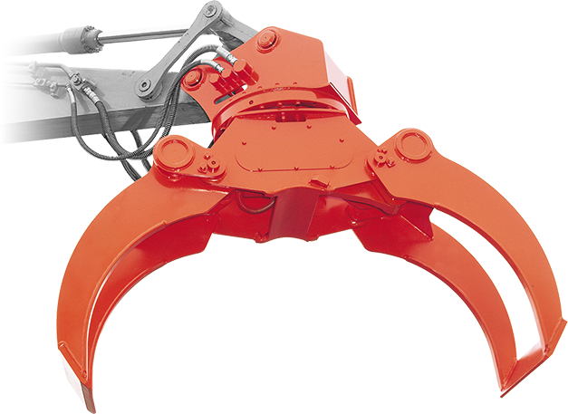 高トルク、360度全旋回により、あらゆる角度の木材を確実につかんだまま旋回可能です。抱え込むように、しっかりとつかむことのできる爪形状は、材木への傷を最小限におさえます。本体内蔵の油圧バルブにより、油圧モータの破損を最大限に防止。
