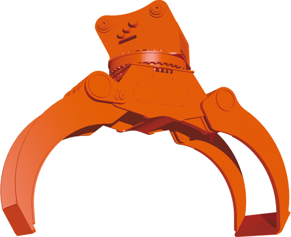 高トルク、360度全旋回により、あらゆる角度の木材を確実につかんだまま旋回可能です。抱え込むように、しっかりとつかむことのできる爪形状は、材木への傷を最小限におさえます。本体内蔵の油圧バルブにより、油圧モータの破損を最大限に防止。