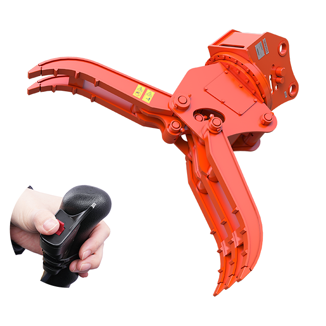 つかみ操作と360°旋回動作が同時にできる全旋回グラスパーの動作が1往復配管機でも可能に!つかみ操作(爪開閉)はもちろん、360°旋回動作が可能です。簡単なリモコン操作で、左旋回、右旋回と自由自在に爪の角度を調整できます。