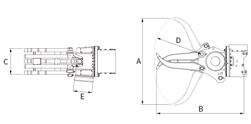 | サイズ | A:1860mm 最大開口幅B:1880mm 本体長さ C:560mm 爪幅 D:1030mm 爪長さ |