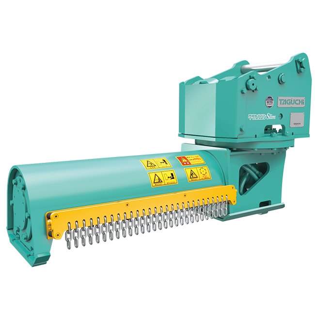 タグチが開発した国産初の完全油圧式クイックヒッチ「完全油圧式ワンキャッチ」の対応モデルもラインアップ。ショベルのキャビンから降りることなく、アタッチメントの付け替えが可能です。対象物や作業シーンに合わせて同仕様のクサカルゴンに付け替えれば、さらに作業効率がUPします。