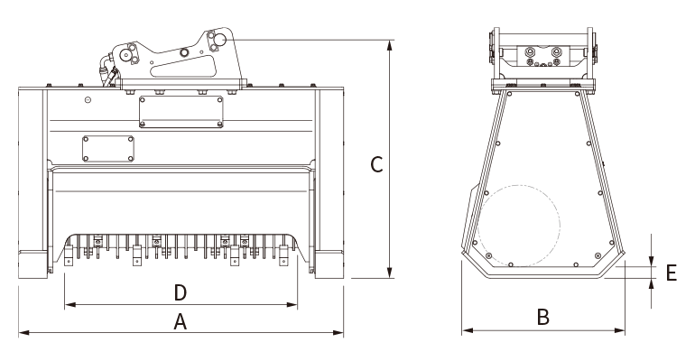 専用ブレードで竹はもちろん、大径木、切り株まで破砕することができる林業用マルチャーです。1系統配管で使うことができ、ドレン配管不要なのでショベルを選びません。