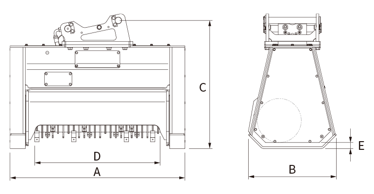 専用ブレードで竹はもちろん、大径木、切り株まで破砕することができる林業用マルチャーです。1系統配管で使うことができ、ドレン配管不要なのでショベルを選びません。
